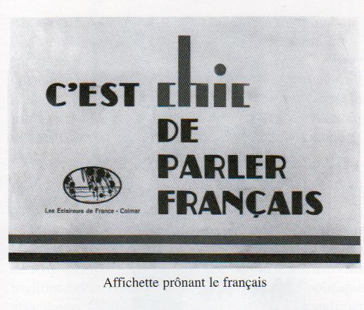 La population des aînés ne maîtrise alors ni le français, ni l'allemand et ne communique qu'en dialecte alsacien. Les journaux continuent à paraître en allemand ; les curés et les pasteurs font leur sermon et leur prédication dans la langue de Luther.