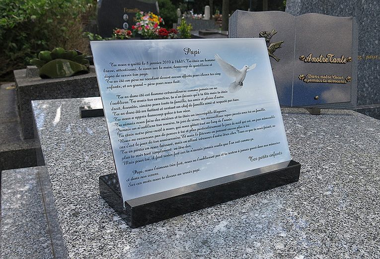 ainsi que la date du décès. Mais il arrive que le nom du parent qui a fait la commande, y figure
