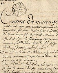 En examinant par le détail des contrats de mariage, on remarque que dans chaque préambule les fiancés promettent d'aller se marier à l'église. Ce contrat, rédigé en langue française, est identique