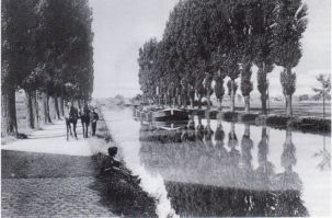 Ils tractaient tête baissée, le regard vide, les épaules labourées par la bande de tissu de la bricole. Ils halaient, les dents serrées sur leur fatigue, gesticulant sans cesse pour tenter de chasser les mouches nombreuses qui voltigeaient sur le chemin de halage..."