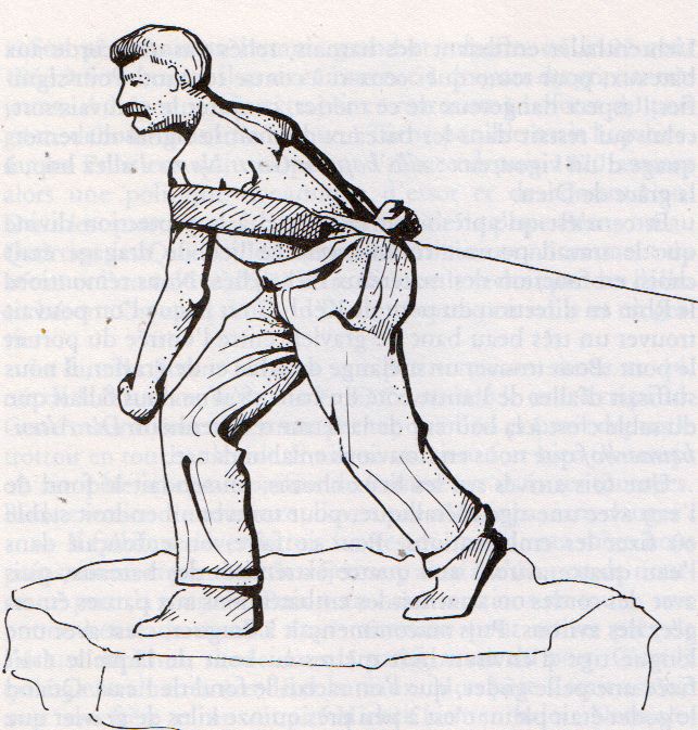 Pour essayer d’évaluer l’effort déployé, il faut se rendre compte qu’un bateau de 300 tonnes tiré par un homme seul (en canal bien sûr) se déplaçait à la vitesse de 700 à 800 mètres à l’heure environ (3). L’effort était intense et prolongé pendant des heures.