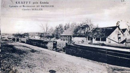 Pour les ersteinois le restaurant-épicerie AU BATELIER de Krafft, constituait un but pour la sortie dominicale en famille au bord de l’eau pour voir les péniches passer l’écluse. Un spectacle pour grands et petits…