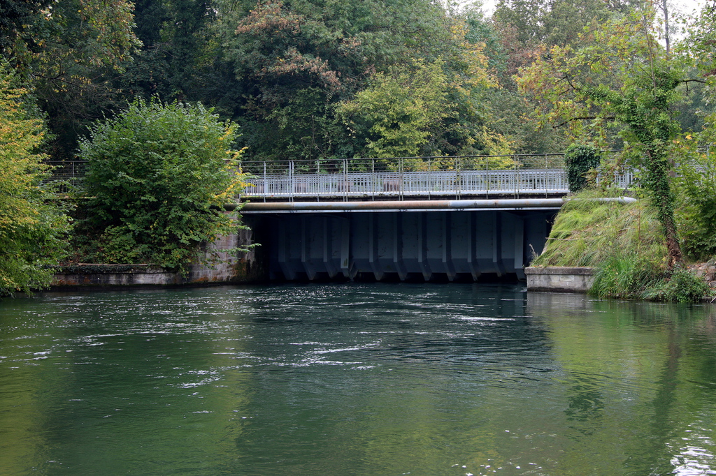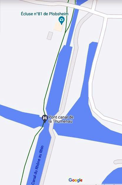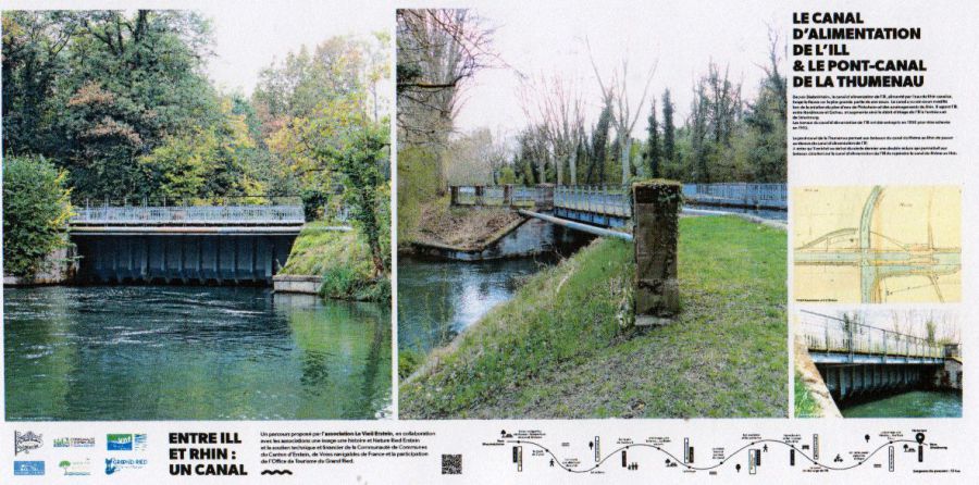 Lors du creusement du canal d’alimentation de l’Ill, s’est présenté une difficulté technique ; celui-ci croisait perpendiculairement le tracé du canal du Rhône au Rhin et son lit était situé en contrebas du dit canal. La solution était de passer dessous. Il fut donc érigé un ouvrage d’art (pont canal) qui permettait au canal du RR d’enjamber le canal d’alimentation.