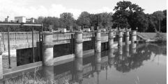 Il comporte sept ouvertures de 5 m de largeur chacune. Le barrage a été automatisé et électrifié : dès que l’eau monte, les vannes s’ouvrent automatiquement. En cas de débordement, l’eau se répand dans les champs d’épandage prévus à cet effet.