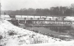 Implanté en aval du croisement avec le canal du Rhône au Rhin, a pour mission de garantir la retenue nécessaire à la navigation commerciale sur cette liaison Rhin-Rhône. L’ouverture de 40 m entre culées est fermée par des fermettes métalliques rabattables latéralement. Un rideau “d’aiguilles” (bois de 2,20 m de long et 7/7 cm de section) prenant appui sur les fermettes et les fers de liaison ferme le canal pour retenir l’eau au niveau nécessaire à la navigation.