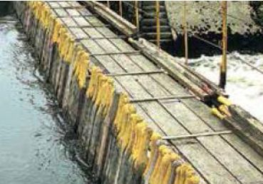 Pourquoi un barrage à aiguilles ? C’est une installation mobile dont la partie entre culées peut s’effacer complètement lors des grandes crues. On enlève les aiguilles au fur et à mesure de l’augmentation du débit et lorsque tous les bois sont retirés on couche les fermettes sur le radier en maçonnerie. L’évacuation des corps flottants se fait plus facilement. Dès que le barrage est couché, la navigation sur le canal du Rhône au Rhin est arrêtée. Au moment de la décrue on procède de la façon inverse pour rétablir le barrage. En période de basses eaux, un passe-nacelles permet la navigation de pêche entre les deux biefs et une échelle à poissons la migration du poisson.