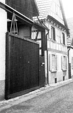 Cette ferme a deux accès. L'entrée principale avec sa porte cochère se trouvant dans la rue du Chat, et une à l'opposé vers le « Gansmattel» (pré pour les oies). Autrefois, il y avait un gardien d'oies qui passait le matin de bonne heure dans les fermes. Il sifflait, les oies sortaient et le suivaient jusqu'au « Gansmattel» pour paître. Si, pendant la journée, ces volailles, pondaient, les oeufs revenaient au gardien. Le soir, le pâtre repassait devant