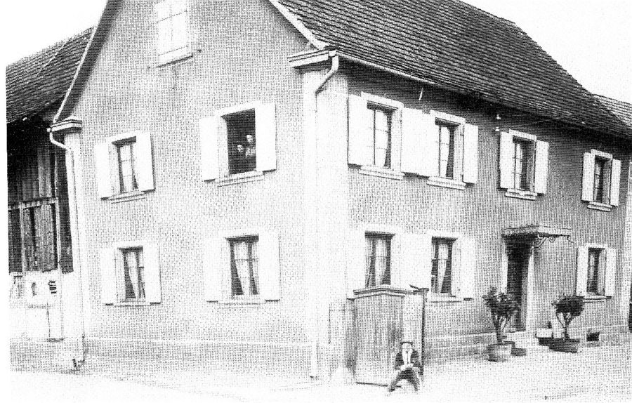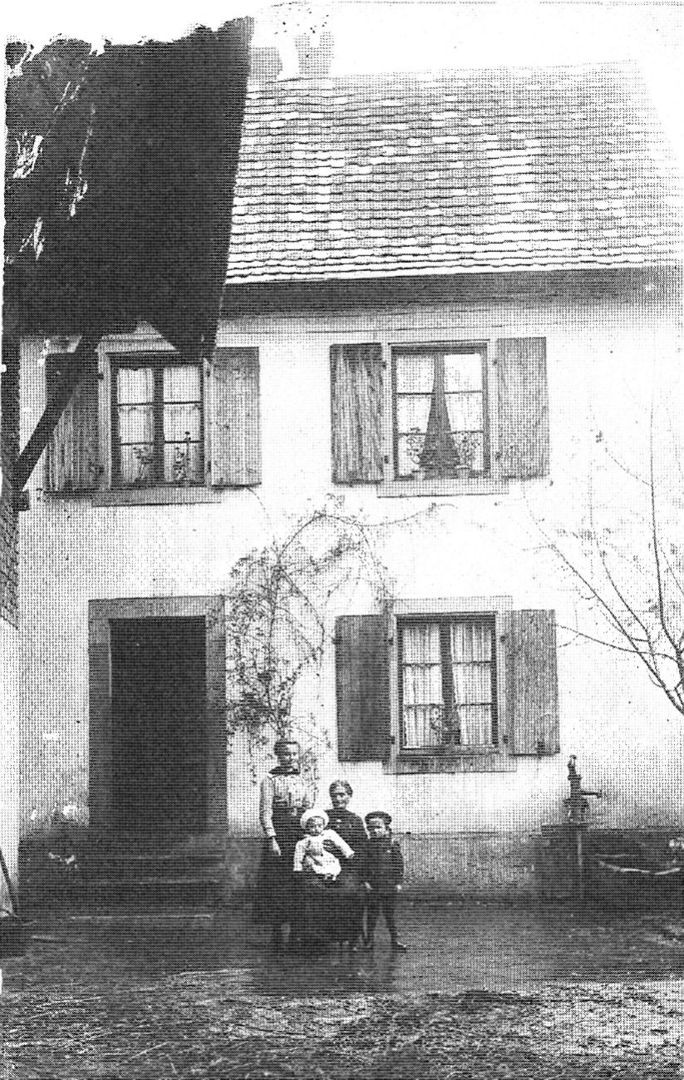 La maison que nous voyons actuellement date de 1880; l'ancienne maison a entièrement brulé en 1879. C'est Jean Philippe époux de Marie Josephine VOGELEIS qui l'a fait reconstruire.