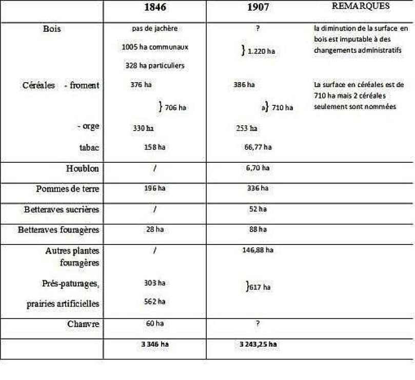 Nous avons pu .élaborer un tableau montrant l'évolution des cultures.