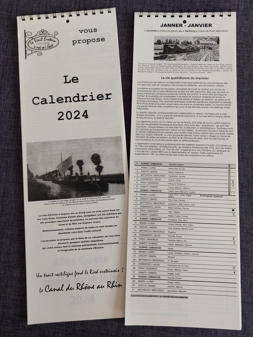 Le calendrier 2024 de l’association Le Vieil Erstein ùn rund um’s Kanton met en lumière le Canal du Rhône au Rhin.