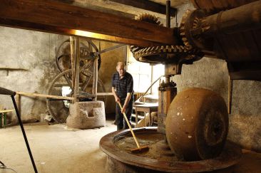 Le frasage de la farine est réalisé par broyage des céréales entre des meules de pierre