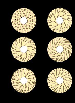 Pour ce faire, les rayons sont creusés à même les surfaces travaillantes des meules. Ils furent l'objet de nombreux essais quant à leur forme (courbe, oblique, tangente...) et leurs profondeurs.
