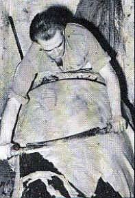 de l'huile de poisson, puis frappées avec un fouloir pour faire pénétrer l'huile. Durant cette étape