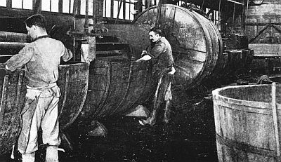 l'écorce de chêne finement moulue. La solution était alors pompée plusieurs fois sur de