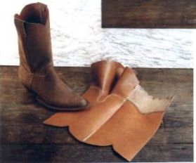 Il faisait alors des patrons en papier et découpait les différentes pièces de cuir. Il y avait cinq patrons pour la tige des bottes: psidi (la pointe), kalami (l'empeigne), fittet (les deux pans de laçage) et fterna (le talon).