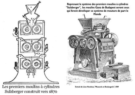 Des expériences comparatives entre mouture sur meules et sur cylindres ont démontré en 1885 la supériorité des cylindres quant à la blancheur de la farine obtenue. Dans les trois décennies qui vont suivre, la mouture par cylindre remplace la mouture par meules de pierre.