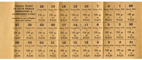 est institué. En Août 1917, les cartes de pain font leur apparition et en décembre 1917, la fabrication de la pâtisserie est interdite.