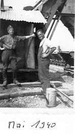 En 1945, avec le bois, j'ai fait construire le silo. Il y avait 4 compartiments : sable, gravier propre, gravier 14/30, et gravier grossier. Sur le silo était monté un tamis à secousses. Georges BARTHEL m'a de nouveau aidé pour l'installation. Martin quitta l'école et Albert revint sans dommages. Nous achetâmes d'occasion notre première camionnette de 2,5 m3 de contenance. La « Reconstruction » avait commencé, et du coup il y avait toujours beaucoup de travail pour nous. Il fallait trouver de nouveaux champs et décaper. Pour ce faire, nous avons donc engagé 2-3 prisonniers de guerre. Nous avons acheté un moteur électrique de 10 CH et un petit concasseur de gravier. Avec les prisonniers, nous avons creusé une cave dans la grange, enclos l'étable de murs sur lesquels nous avons posé une dalle en hourdis. Puis peu à peu nous avons vendu l'excavatrice, les wagonnets et les rails, car nous n'en avions plus besoin.
