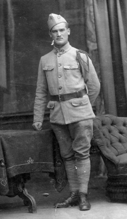 Je n'étais pas particulièrement réjoui, quand il s'agissait, pour nous Alsaciens de la classe 1919 de redevenir soldats et de servir pendant 4 mois et 5 jours. Nous étions fiers d'être les premiers conscrits d'après guerre chez les Français, en 1919, en pantalon blanc et béret bleu-blanc-rouge. Nous devions rejoindre en février 1920.